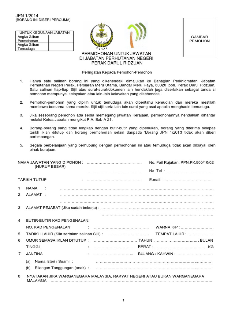 Borang permohonan kerja jpn. Perhatian kepada pemohon yang berminat. Kelulusan yang diperlukan untuk memohon jawatan kosong jpn ini adalah bermula dari lulusan spm hingga ke lulusan diploma dan ijazah. Untuk memohon pastikan anda rujuk syarat pengambilan bidang tugas jawatan dan lokasi kekosongan jawatan terlebih dahulu.