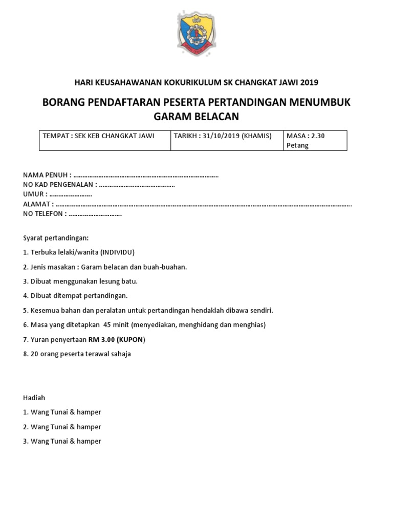 Borang Pendaftaran Peserta Pertandingan Menumbuk Garam Belacan