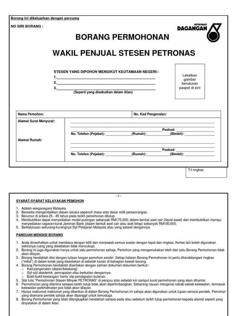 Borang Permohonan Wakil Pengedar Gas Petronas Pdf Free Download