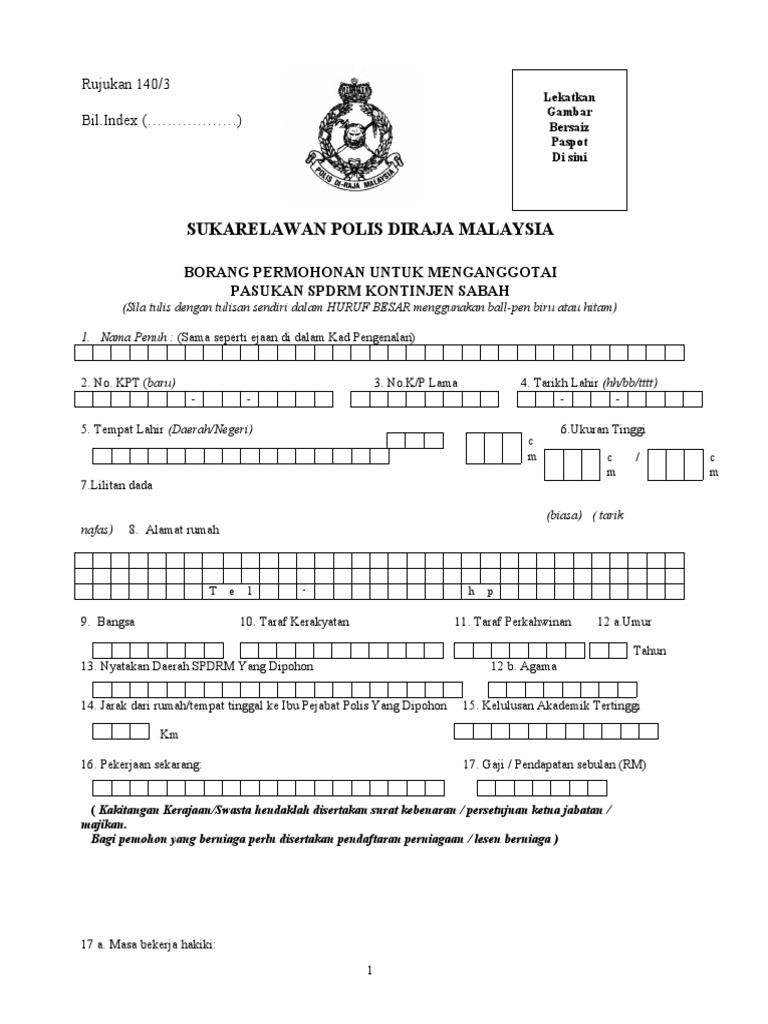 Borang permohonan polis. Bagi warganegara malaysia yang memenuhi syarat kelayakan boleh membuat permohonan polis 2018 dengan membuat pendaftaran borang spa8i secara atas talian. Borang ini dikenakan bayaran rm 2 00 permohonan untuk jawatan dalam pasukan polis diraja malaysia 1. Pemohon juga boleh menyemak status permohonan pengambilan pdrm 2018 secara online di semak pdrm.