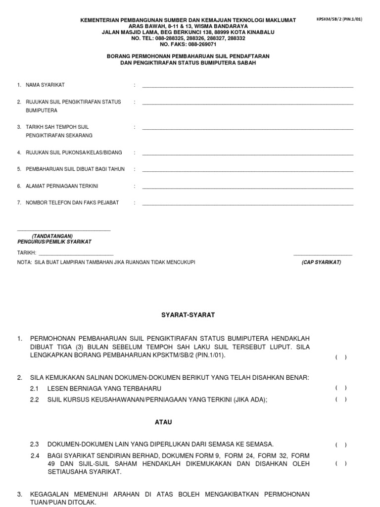 Borang pukonsa sabah. Oleh itu semua perolehan kerja yang akan dipelawa hendaklah dibuka kepada kontraktor kontraktcr yang berdaftar dengan pukonsa dan pejabat kewangan persekutuan cawangan sabah sahaja. Kementerian kewangan negeri sabah blok c pusat pentadbiran negeri sabah jalan teluk likas tanjung lipat 88400 kota kinabalu sabah. Tel 088 368000 fax 088 213584 tarikh terakhir kemaskini.